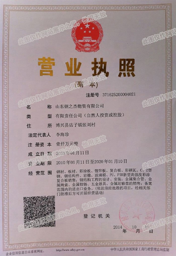 2010年1月11日:山東鋼之杰物資有限公司正式注冊成立